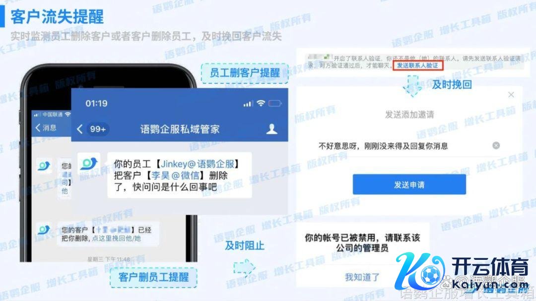 对于那些还是把我方删除、万古辰不活跃、不修起音尘、不产生任何破钞作为的客户,不错通过依期算帐开释一部分好友限额,给新的客户添加。语鹦企服提供“客户流失教唆”功能,不错实时监控客户是否删除了职工的企业微信,并匡助企业实时扶助流失客户或算帐僵尸粉。